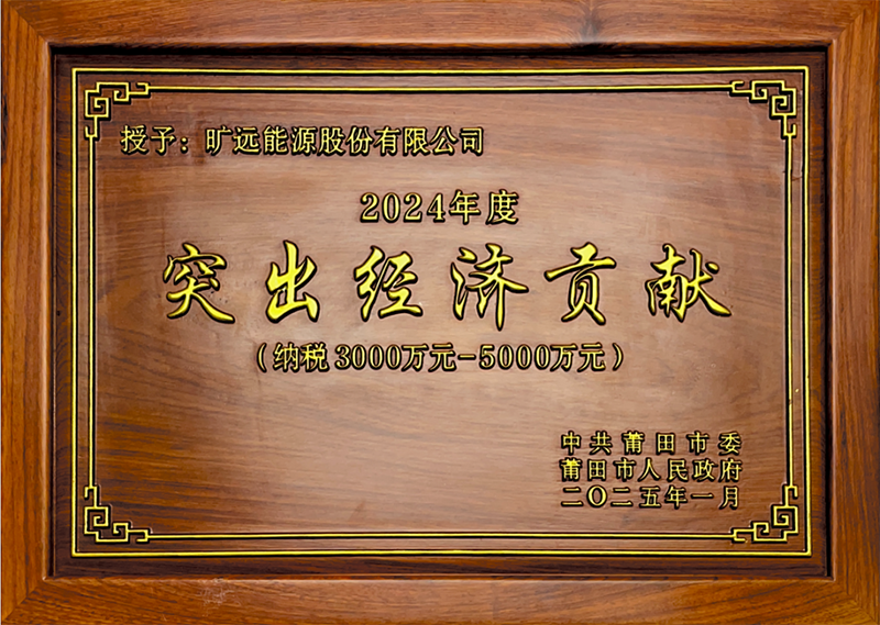 2024年01月 旷远能源股份有限公司被中共莆田市委、莆田市人民政府授予“2023年度突出经济贡献企业特等奖”荣誉。