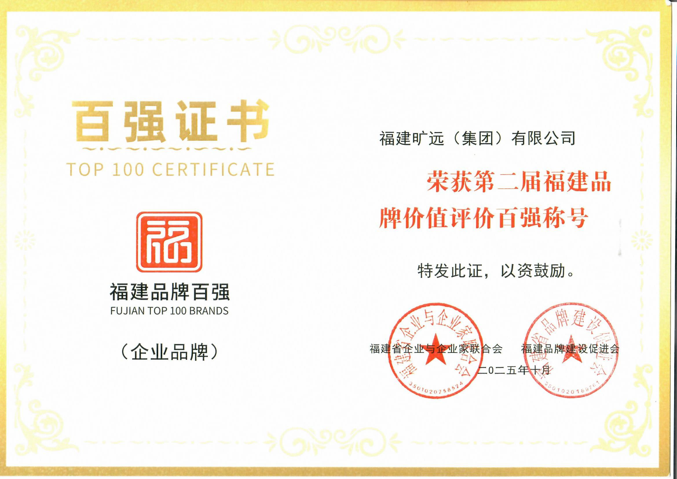 2025年10月 福建旷远(集团)有限公司荣获“第二届福建品牌价值评价百强”称号第37位