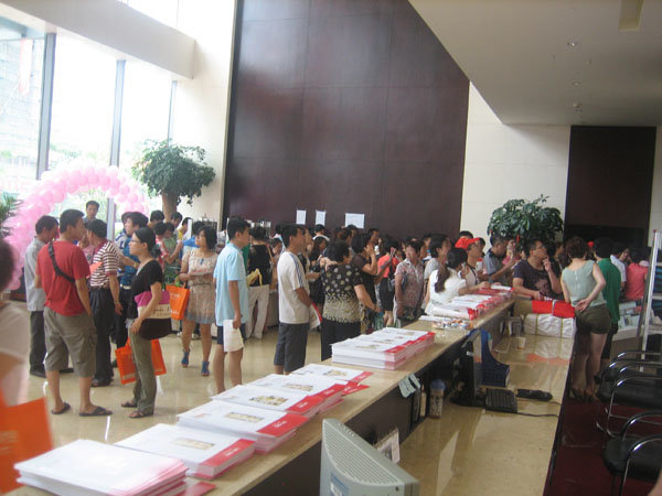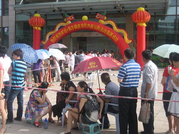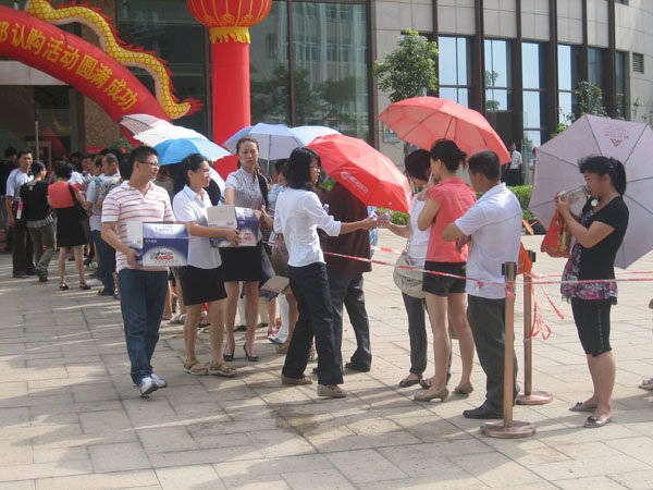 本报记者了解到,参与本次住宅内部认购活动的人们异常踊跃。看准楼盘区位优势的市民,在24号下午便早早地在售楼处门口为明天的认购活动排队等待领号,截至晚上24时,排队等待认购的人数竟已超过60人,令工作人员震惊不已。当第二天售楼处开放时,入口大门已被热心的购房者团团包围,超过200的购房者焦急地等待着领取自己的购房号码。对此,开发商高度重视,除了出动企业内部的安保人员外还请外部保安协助维持现场秩序,防止意外事故的发生。当购房号发放后,不少进入售楼处的认购市民,几欲冲破安保人员的引导,想尽快选购自己的称心好房,但在现场工作人员的悉心引导下,本次认购活动最终圆满、有序、火爆地完成,取得了旷远地产的开门红。