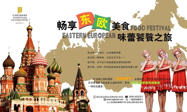 为回馈广大新老客户,展现莆田多元的饮食文化,旷远锦江国际酒店将于12月6日之起举行“畅享东欧美食,味蕾饕餮之旅”——“东欧美食节”活动。